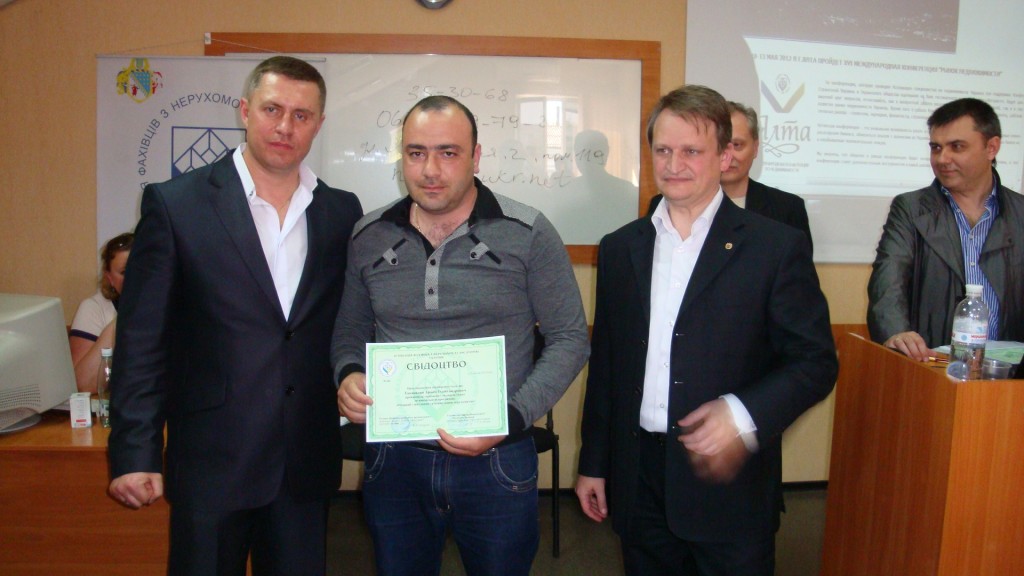 В завершении, в непринужденной и комфортной обстановке , всем слушателям вручили свидетельство о прохождении курсов «Операции с жилой и нежилой недвижимостью», а вновь вступившим в АСНУ - свидетельство и значок члена Ассоциации.