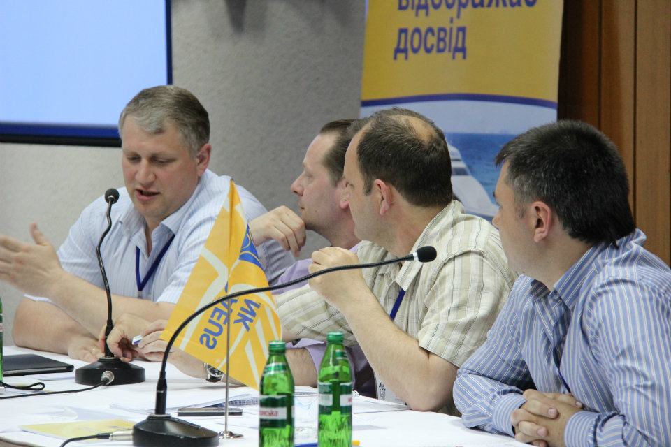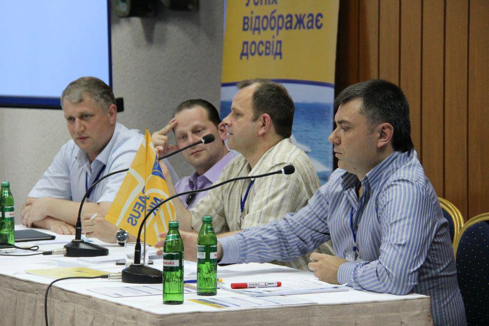 В первый день Конференции состоялась деловая игра "Брейн-ринг". В борьбу за призовые места вступили команды с разных регионов Украины: команда города Киева "Риэлтор по-киевски", "Винницкие перцы" , сборная команда АО "Пиреус Банка МКБ", представители солнечной Одессы "Дети лейтенанта Шмидта", команда города Днепропетровска "Днепр-чемпион", команда "Первая столица" город Харьков, харизматичная команда Севастополя "Черноморский флот" и команда города Львова. Игра была очень напряженной и интересной, каждая команда достойно боролась за победу и отстаивала честь своего города. По результатам игры места распределились следующим образом: третье место заняла команда города Киева, на второе место вышла команда Севастополя, а первое место, подтвердив свое название, заняла команда Днепропетровска "Днепр-чемпион".