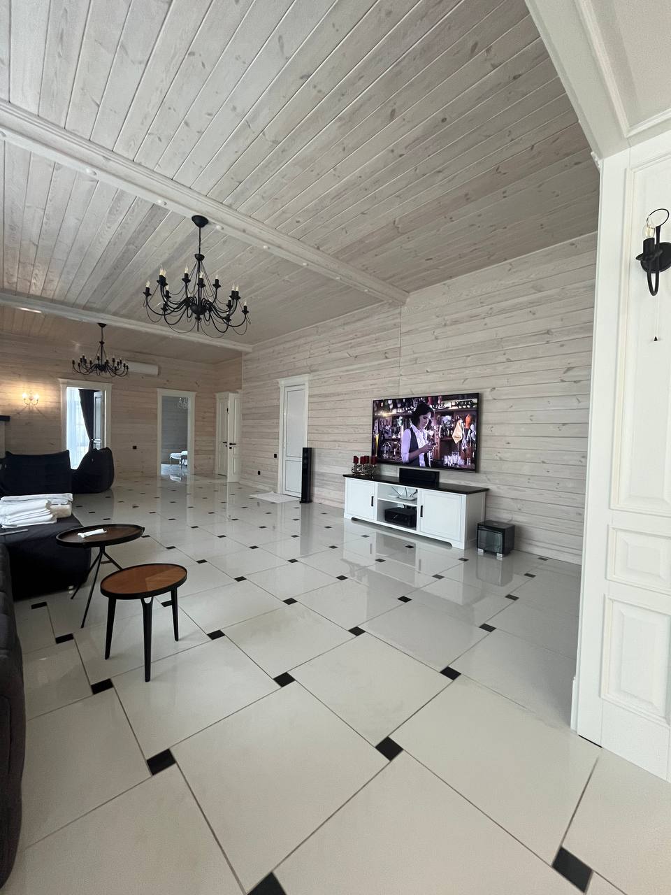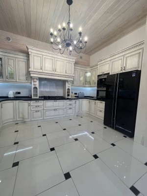 Шикарна зона відпочинку біля каміна. Шикарна зона відпочинку біля шедеврального каміну. Вишукана, велика кухня. Вбудована кухня із справжнього дерева у білих тонах.