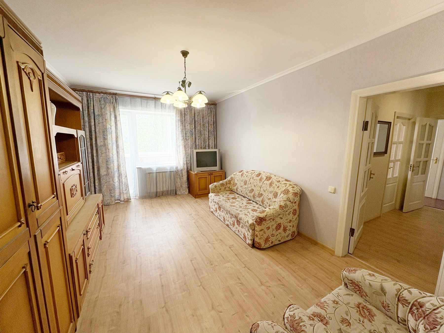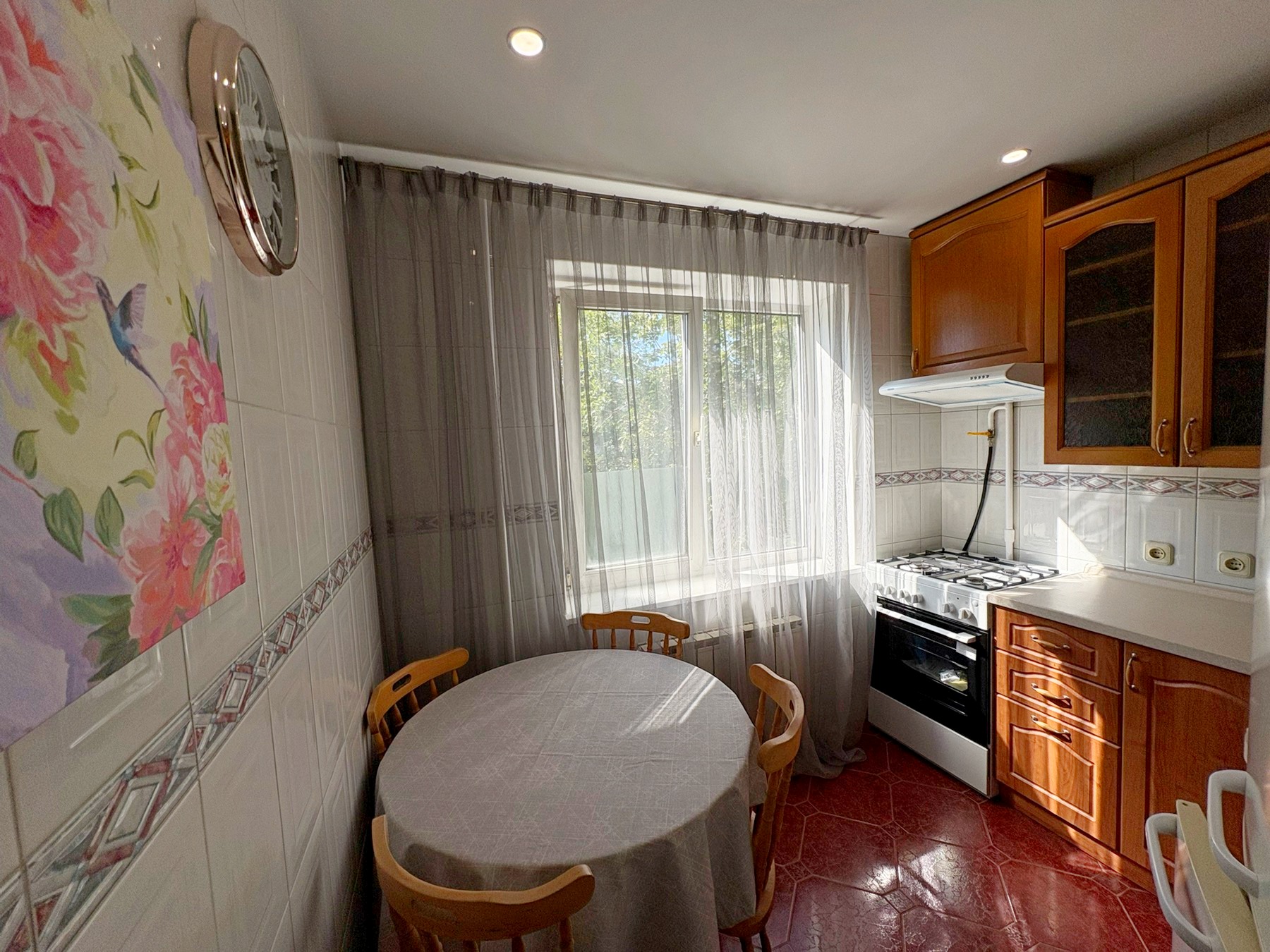 Переваги квартири: Повністю зроблений ремонт у 2025 році Балкон засклений і утеплений (вихід із кімнати) Двері з натурального дерева На підлозі — ламінат, кухня— кахель Санвузол роздільний, ванна Квартира повністю мебльована Техніка: нова плита, холодильник, пральна машина Тамбур на дві квартири Вкладень не потребує — заходь і живи