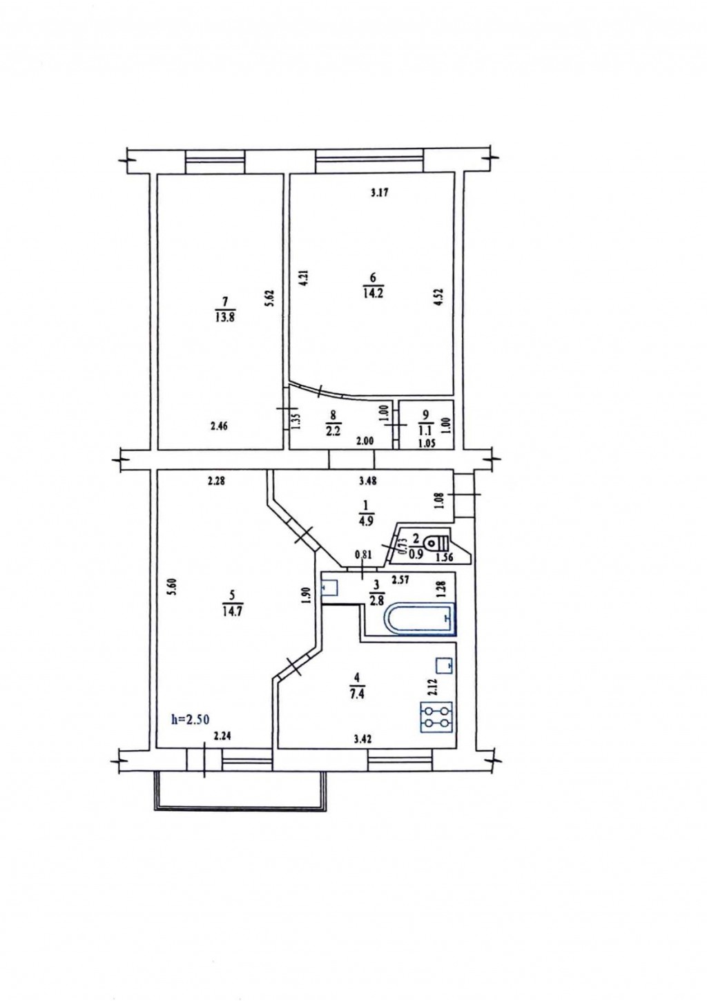 Загальна площа — 63,8м² 3/5 поверх 3 кімнати площею 13, 14, 15м2 Кухня 7,4 м2 Комора Передпокій Засклений балкон 2 кондиціонери Сигналізація