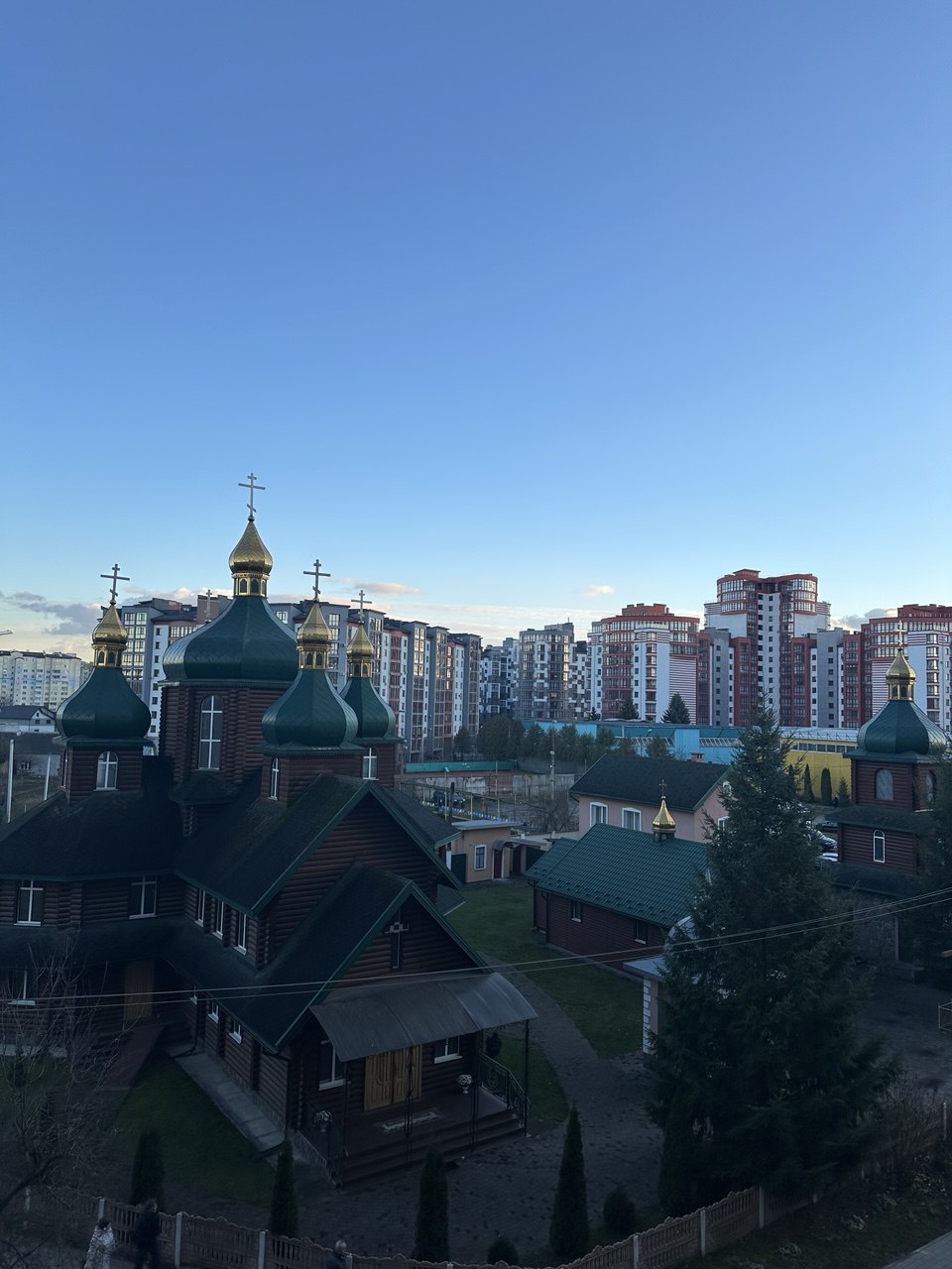 4-й поверх цегляного 9-поверхового будинку. Східна сторона, гарний вид на церкву та стадіон.