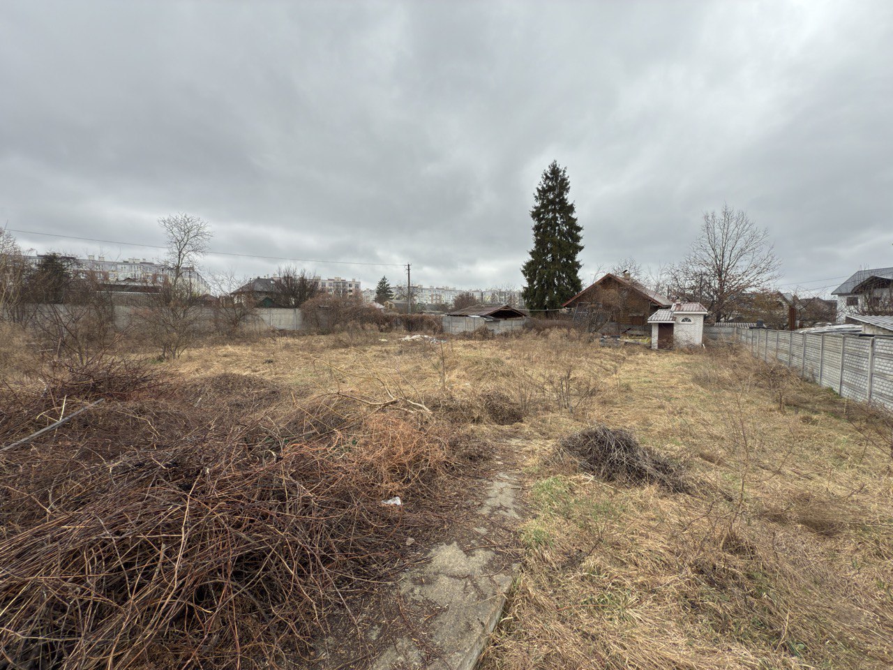Ділянка складається з 3 ділянок (продаються разом), рівна, знаходиться на закритій вулиці, на вулиці 3 будинки, відкатні, автоматичні ворота, огороджена бетонним забором.