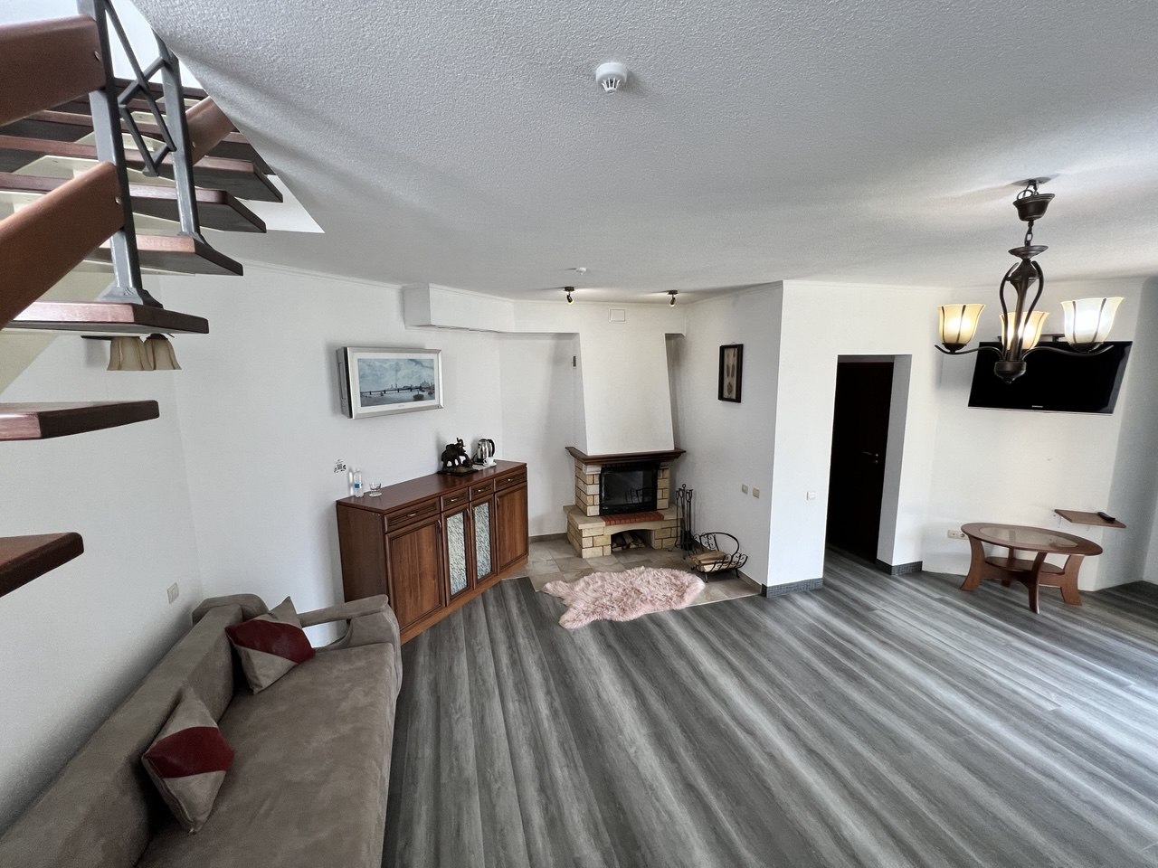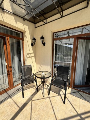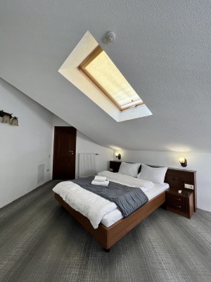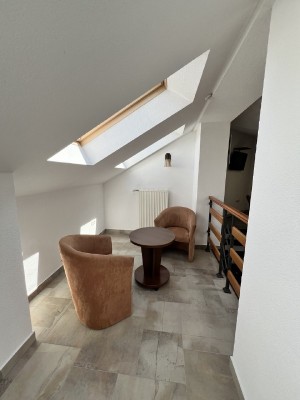 Пропонуємо готельний номер загальною площею 90,4 кв.м на четвертому поверсі з виглядом на гори та річку Прут. На першому рівні - велика вітальня з каміном та відкритою теорасою, на другому рівні - спальня, просторий санвузол з ванною.