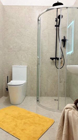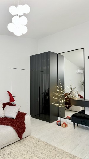 Окрема спальня. Кухня-столова, максимально укомплектована меблями та технікою (варочна поверхня, духова шафа, мікрохвильова піч, телевізор). Підігрів підлоги в санвузлі. Окрім котла встановлено бойлер, електрична рушникосушарка.