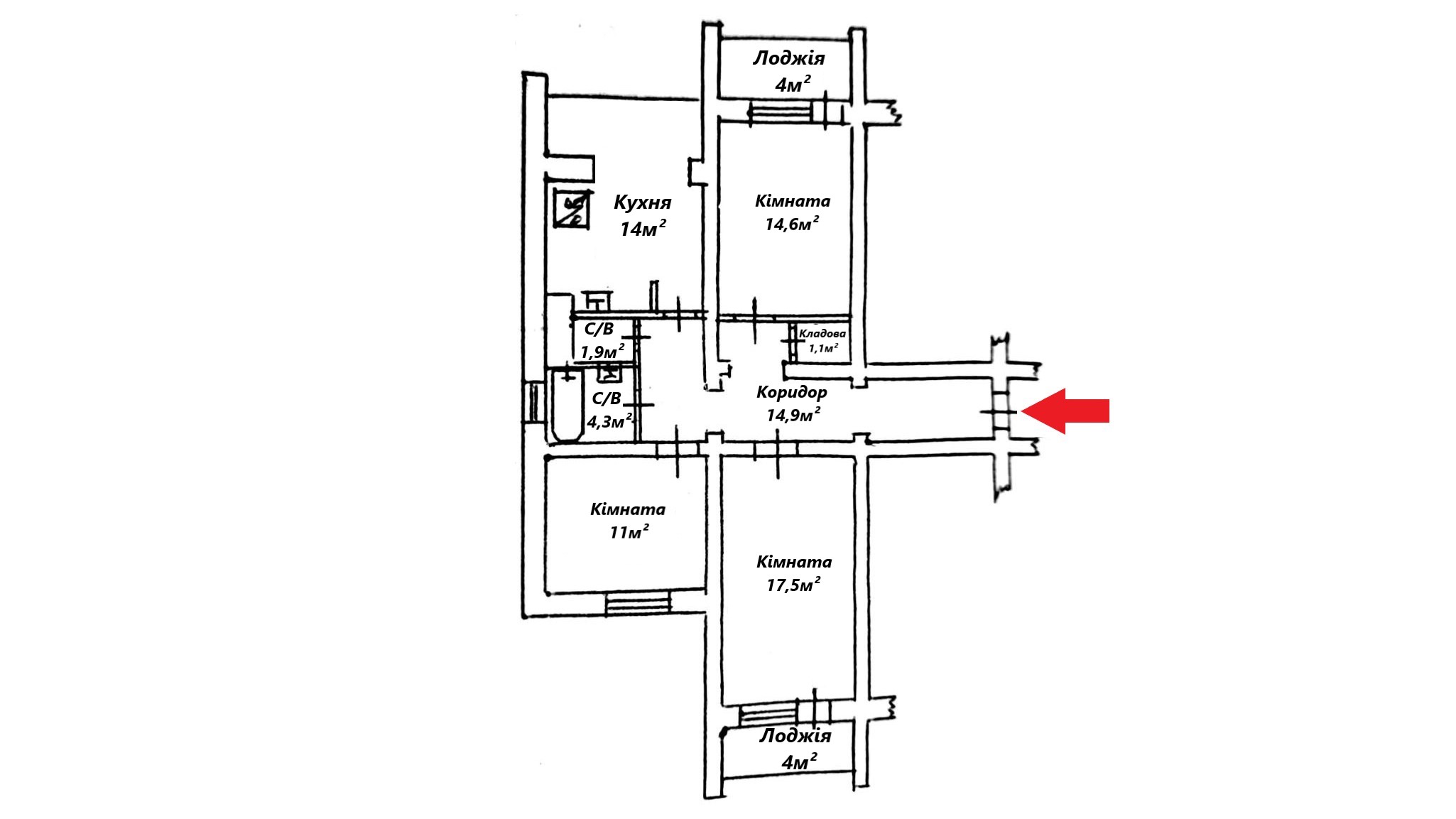 Жила площа: 43 кв.м
