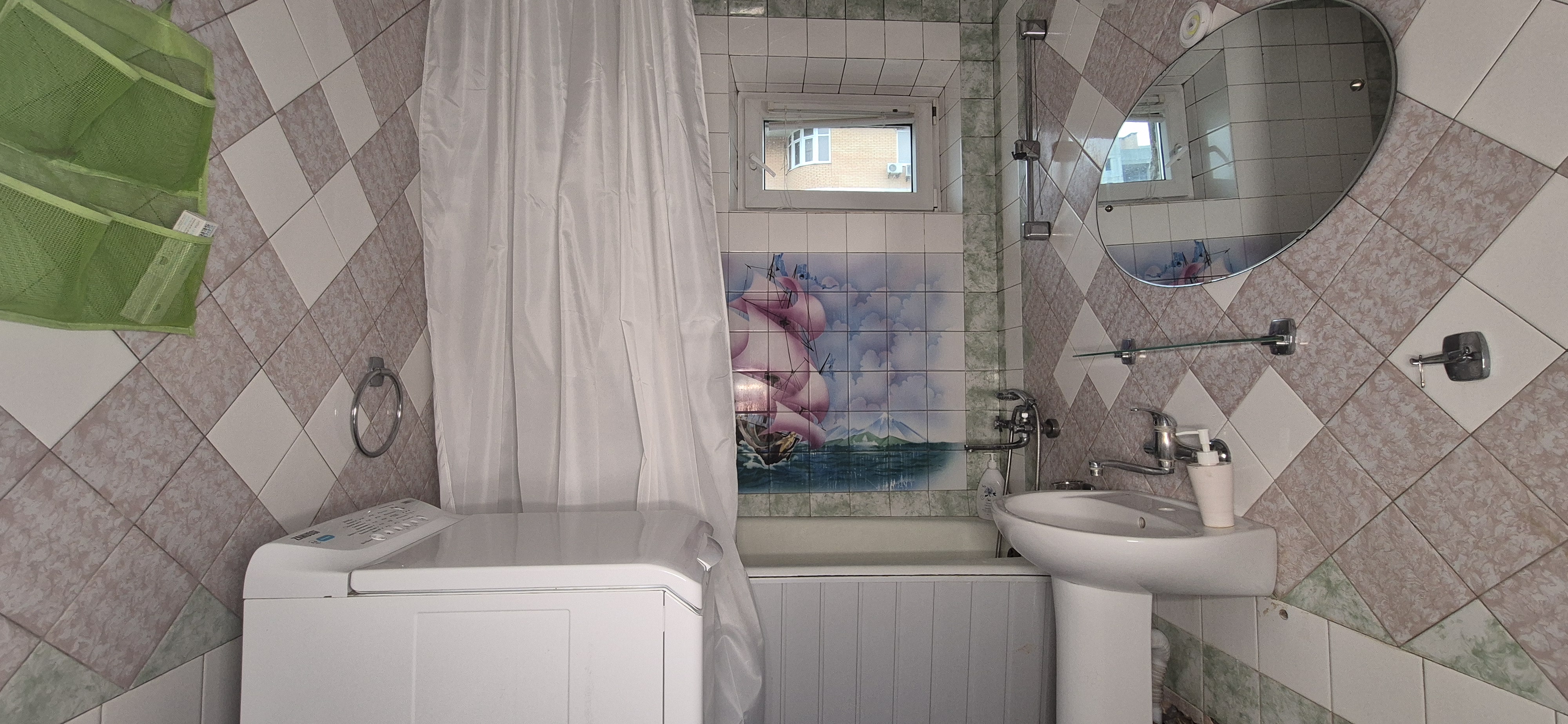 Санвузол: пральна машина, ванна, умивальник, унітаз.