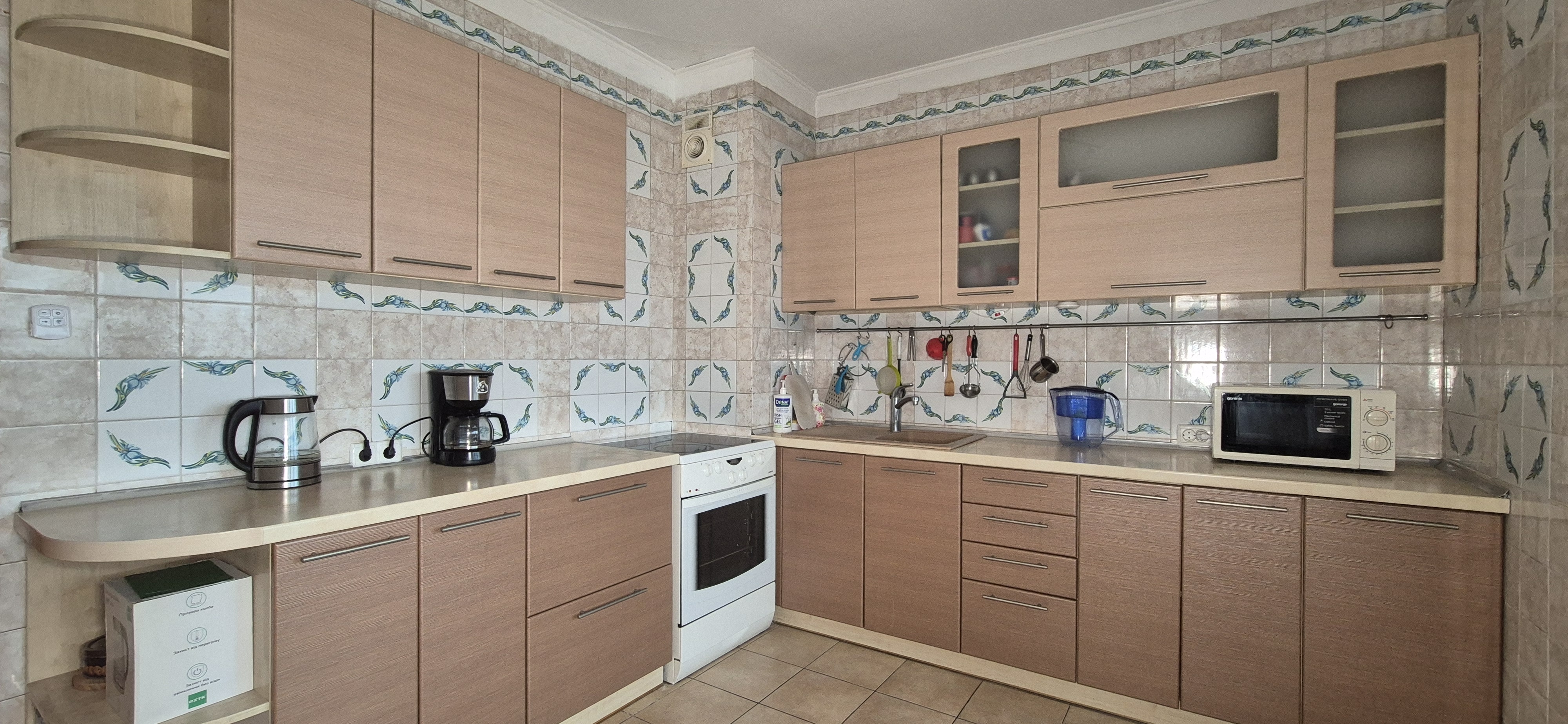 Кухня: вбудований гарнітур, обідній стіл, ел.плита, холодильник, кавомашина, ел.чайник, мікрохвильова піч,