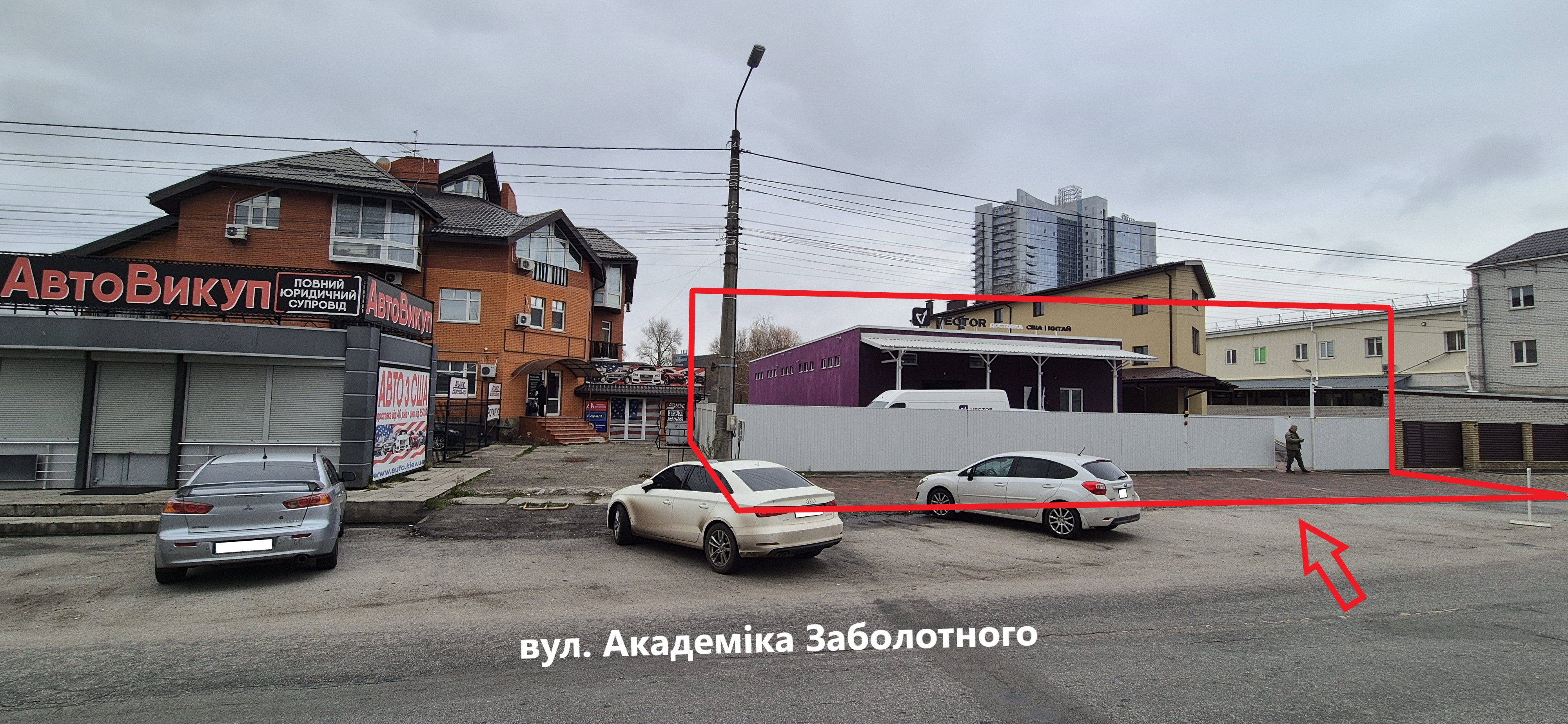 Навпроти приміщення Авторинок, активний трафік, асфальтована дорога. Зручний виїзд на Кільцеву та Столичне шоссе.
