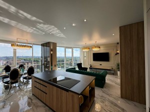 Квартира з неймовірними краєвидами, що відкриваються з панорамних вікон. Ремонт виконаний з дорогих та якісних матеріалів у світлих, спокійних тонах. Є 3 кондиціонери. Тепла підлога по всій квартирі. Квартира на електриці. У квартирі продумано все до дрібниць, починаючи з санвузла, закінчуючи просторими гардеробними. Простора кухня-вітальня дозволить приймати багато гостей. 2 окремі спальні. Залишається абсолютно все: меблі, техніка. Заходь і живи. Ця розкіш чекає на тебе.