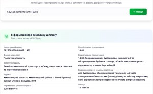 Продам велику земельну ділянку в передмісті Хмельницького, Лісові Гринівці. Площа: 14,3288 Га Вартість: 788 000$ (550$/сотка)+ витрати на переоформлення. Кад.№: 6825083600:03:007:1982 Призначення: 14.01 Для розміщення, будівництва, експлуатації та обслуговування будівель і споруд об'єктів енергогенеруючих підприємств, установ і організацій Власність: приватна. Адреса: Хмельницька область, Хмельницький район, с. Лісові Гринівці, вулиця Степана Бандери, 27/1 Розташування: знаходиться в масиві між СЕС"Лісові Гринівці" Старокостянтинівським шосе. Фасадна частина до траси - 365м.. Гарна інвестиція. Можна змінити призначення під будівництво. Пропозиція від представника власника.