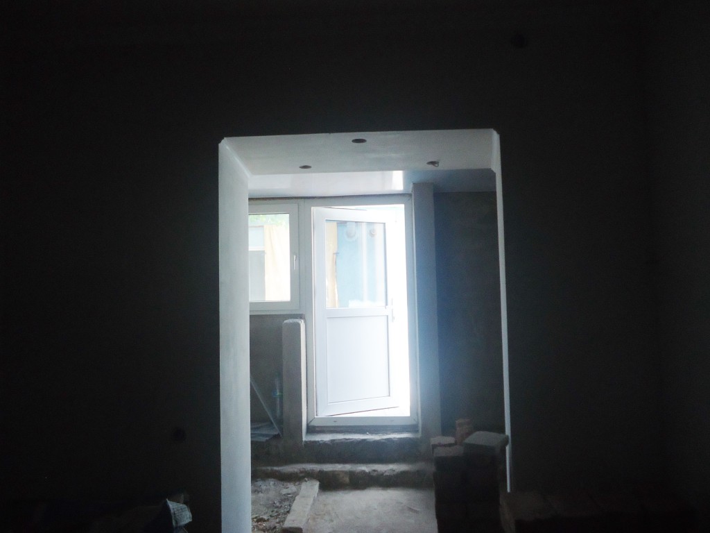 Выполнен ремонт на 70%:шпаклёвка стен с разводкой электропроводки на розетки,стяжка пола,подвесной гипсо картонный потолок с разводкой под точечные светильники,металлопластиковая дверь и окно с зеркальным светоотражающим стеклом.