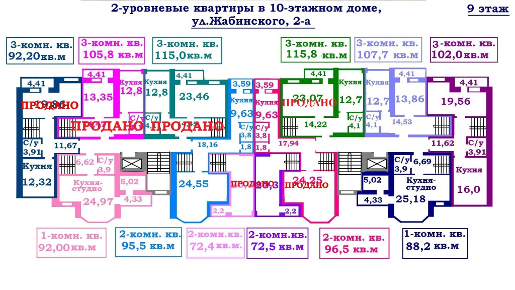 Двухуровневая 3-комн. квартира в НОВОМ кирпичном доме по ул. Жабинского, Дом сдан !