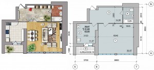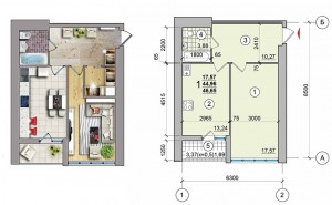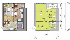 1-кімн.кв. загальною площею: 42,08м,