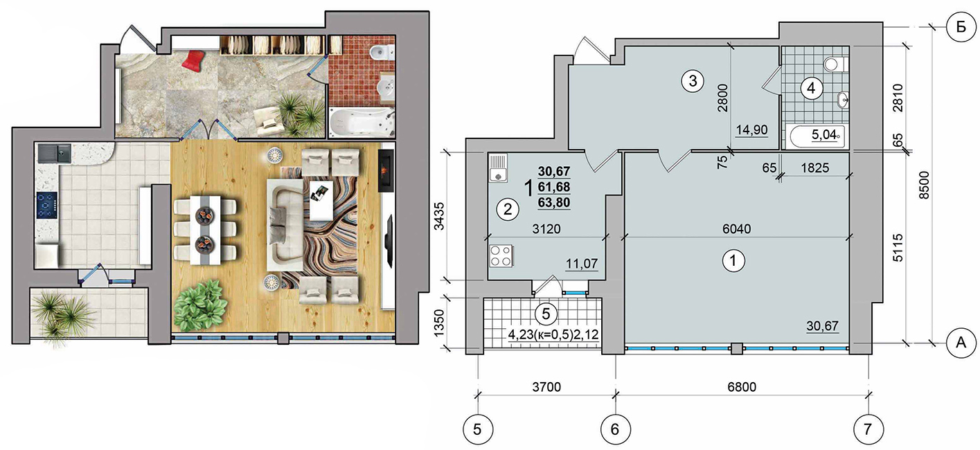 - Підготовка підлоги, штукатурка стін (крім приміщень санвузла, ванни та робочої стіни кухні).