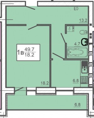 Загальна площа - 49,7 м²;