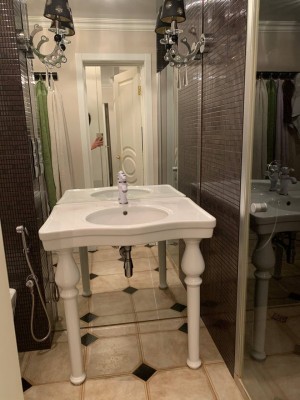 Выполнен авторский ремонт ламинат Бельгия, текстиль Англия, карнизное освещение, теплый пол по всему периметру квартиры.
