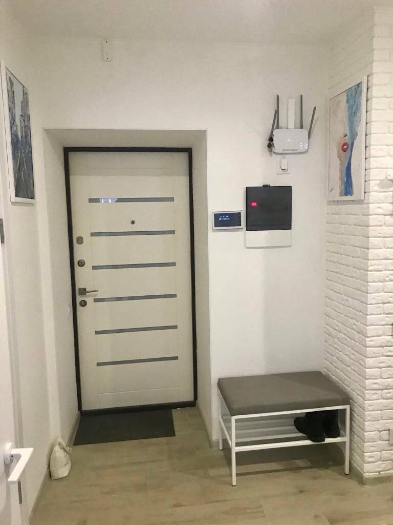 Большая светлая спальня с двуспальной кроватью, вместительный шкаф, кондиционер. Кухня студийно объединена с гостиной, красивая глянцевая белая встроенная кухня, индукционная плита, дорогая техника, холодильник, удобный угловой мягкий диван, обеденная зона, рабочая зона для ноутбука, ванная, стиральная машина- автомат, гардеробная,,, Надежная бронированная входная дверь.