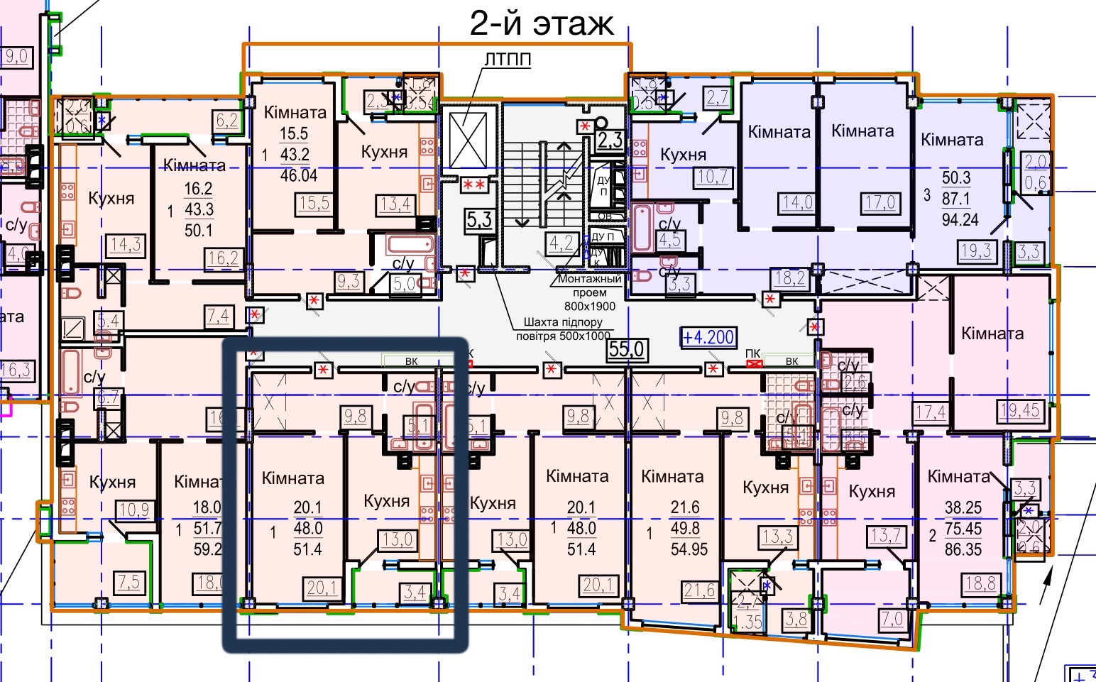 Загальна площа: 51.4 кв.м
