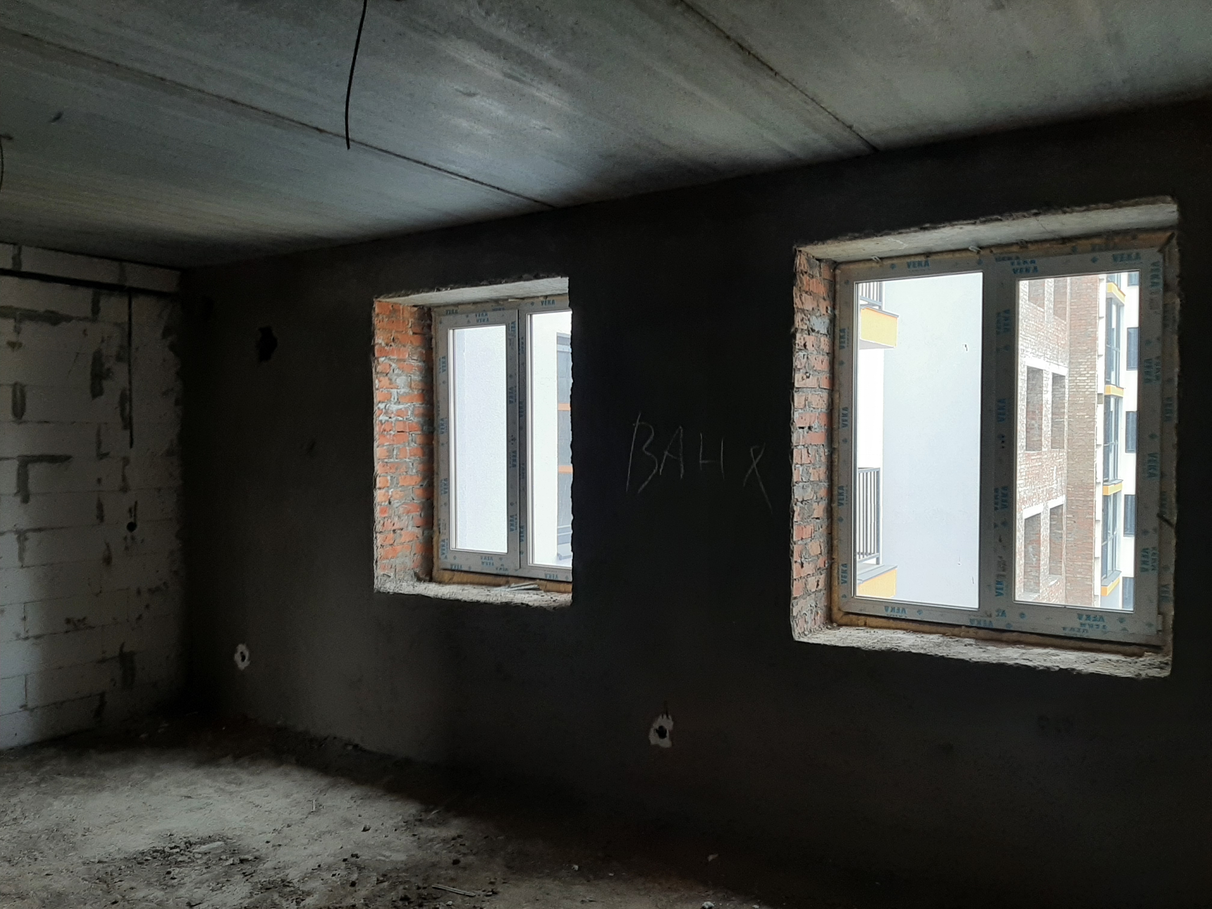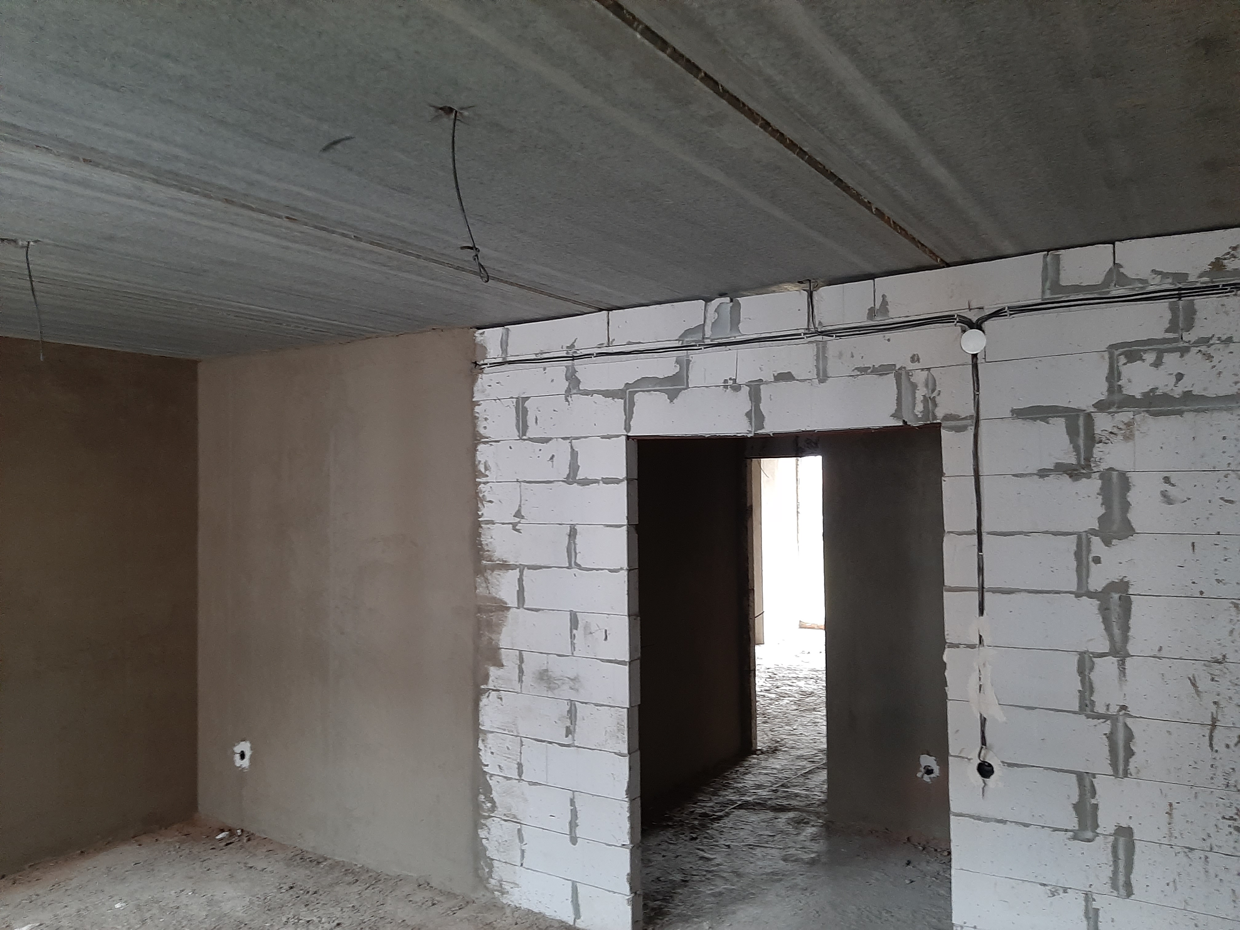 Поштукатурені всі цегляні стіни.