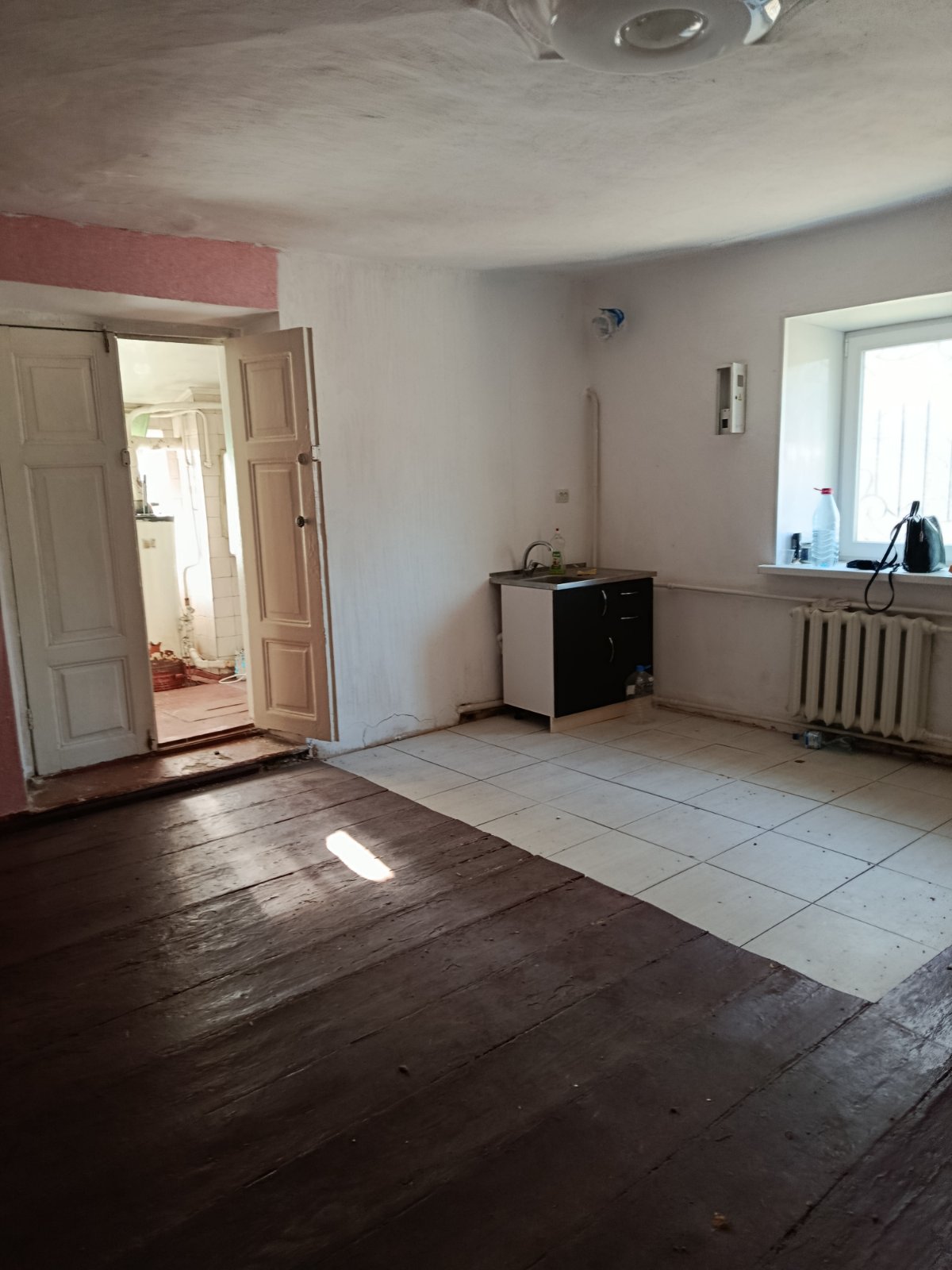 В квартирі велика квадратна кімната,зручний суміжний санвузол з душовою кабінкоюю.