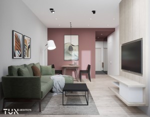 Загальна площа – 50 кв. м: зона кухні 6,1 кв.м з виходом у вітальню 18,1 кв.м, ізольована спальня - 9,2 кв.м, санвузол 5,4 кв.м, лоджія 8 кв.м.