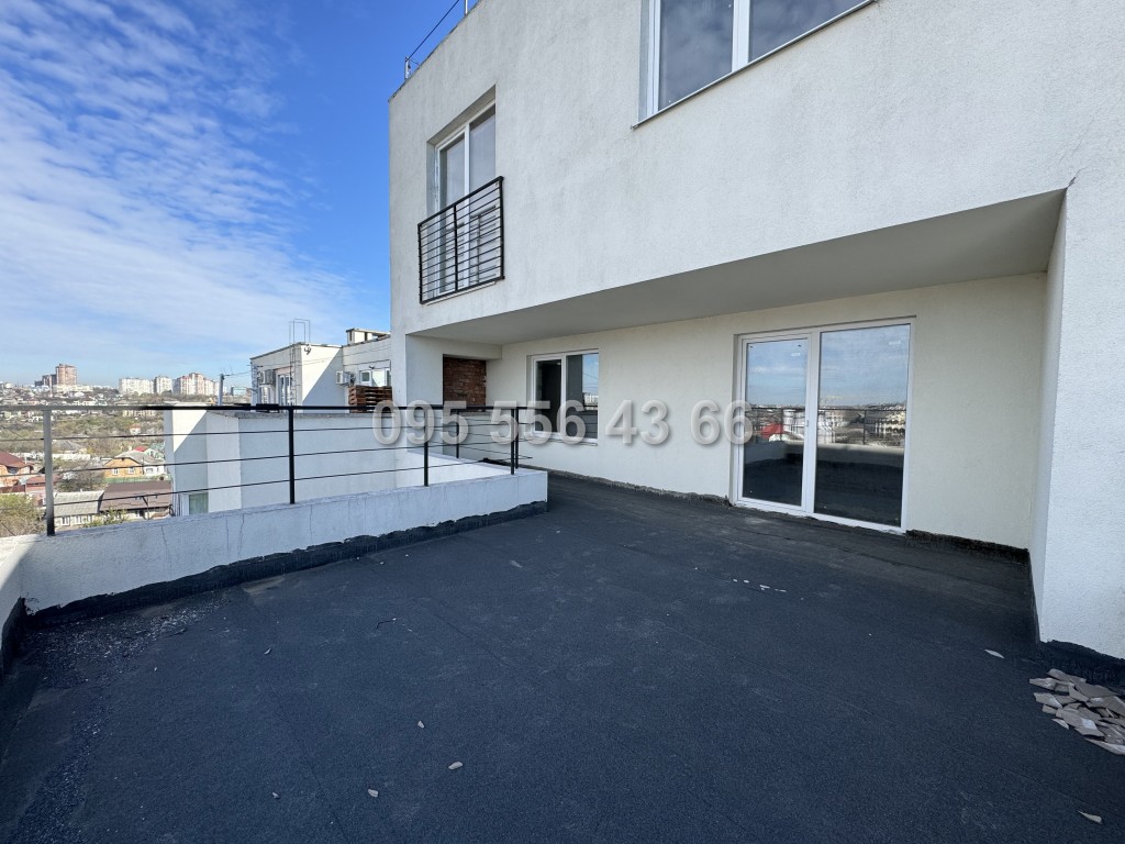 Продається видова дворівнева квартира з двома великими видовими терасами (15 та 30 м²) на 4-5 поверхах шестиповерхового будинку. Квартира після будівельників загальною площею 97 м² має вільне планування, що дає можливість розробити власний дизайн-проект, є можливість зробити одну з терас закритою.