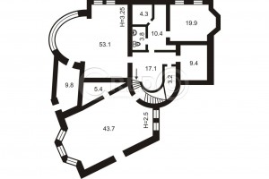 - Цокольний поверх: гараж на два авто з автоматичними воротами, заг.пл. 43, 7кв.м., більярдна 53, 1кв.м., топочна 19, 9кв.м., кладова 9, 4кв.м., підсобні приміщення, с/вузол, сауна