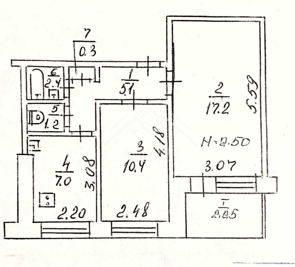 3 кімн., площа 56/44/6, поверх 2/5